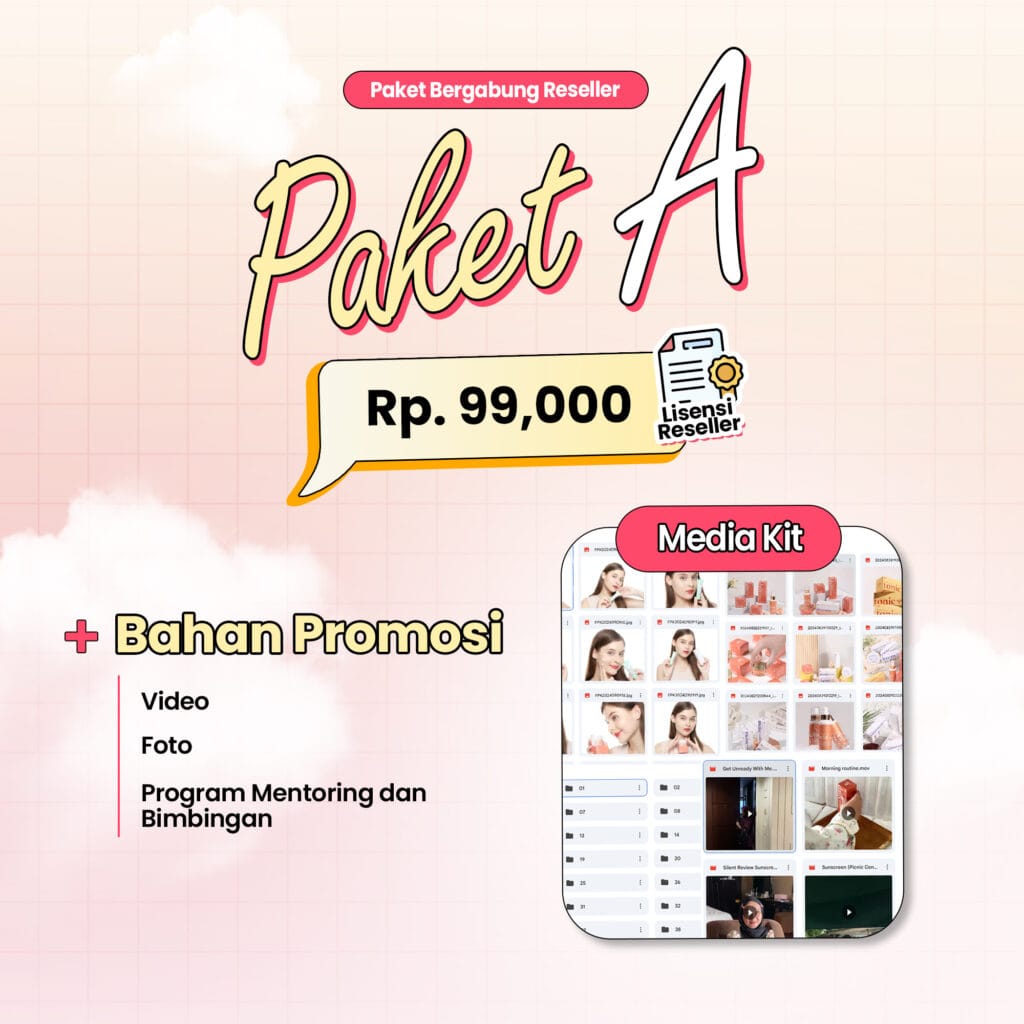 Keuntungan menjadi reseller termasuk diskon produk, komisi penjualan, komisi afiliasi, materi promosi, pelatihan khusus, serta kesempatan untuk mendapatkan reward seperti smartphone, motor, dan trip luar negeri.